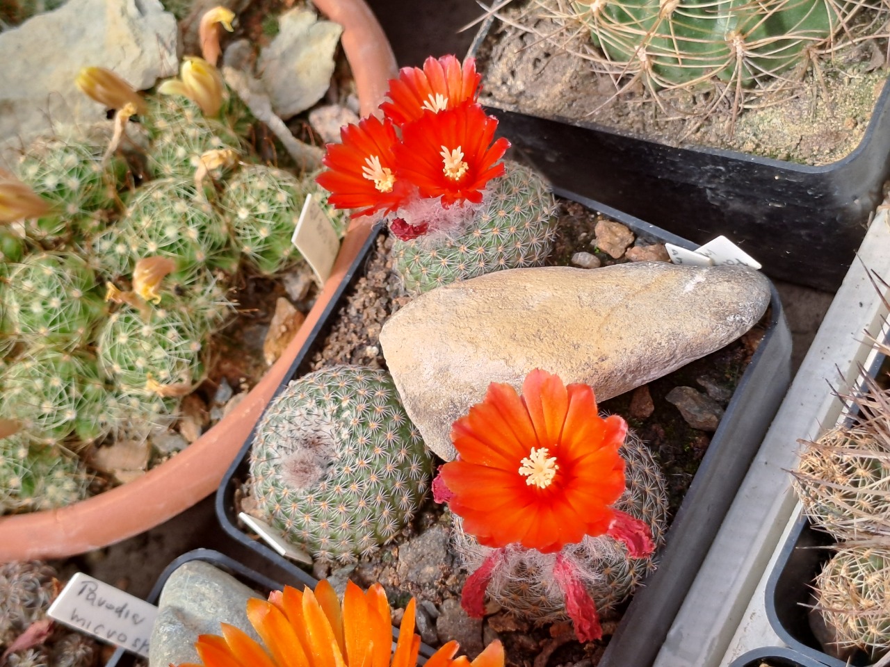 Pro tuhle Parodia herzogii mám slabost...umí krásné a různobarevné háčky i protiháčky, středové  trny dělají na temeni přímo šišku...má pestrou paletu barev květů od zlatooranžové až po červenou,je spíše korpulentnější než čahoun...