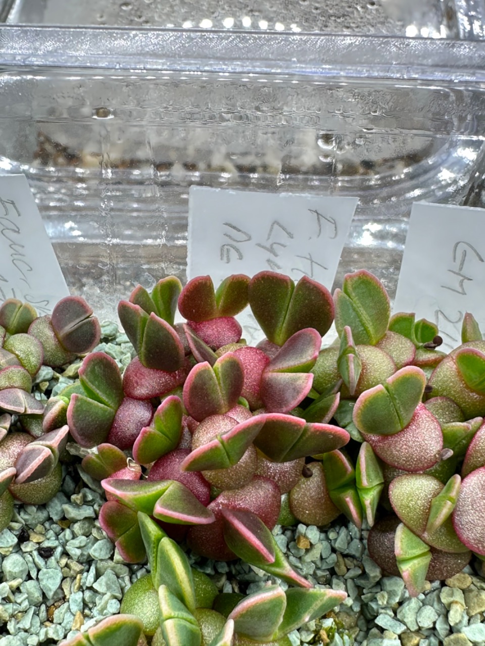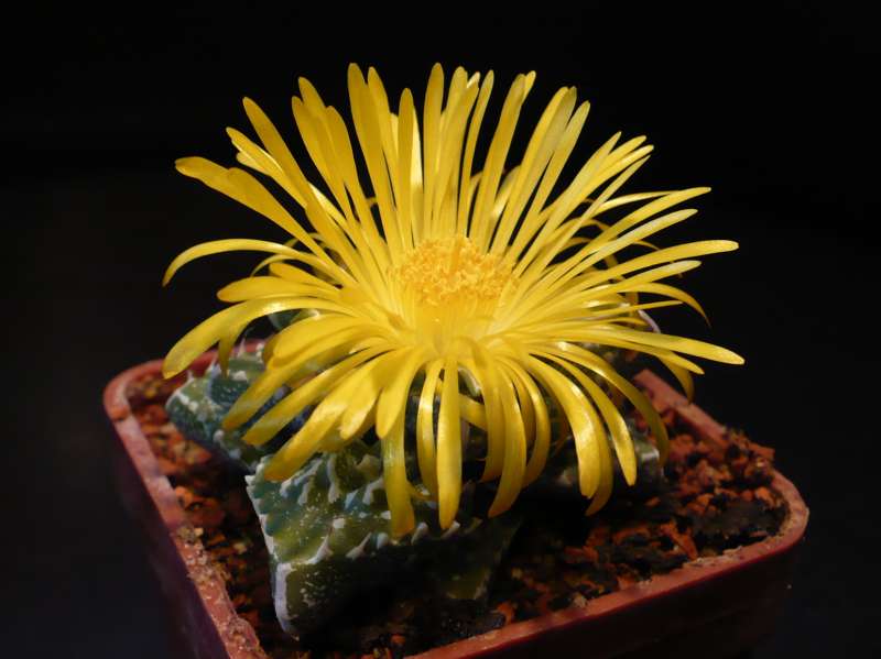 Hezky napsané,"manželka co nechce po létech píchat".Máš na mysli,že nemá už teď ráda kaktusy?Jinak to zimuji ve stejných podmínkách jako kaktusy.Bez zálivky.Mám ještě Titanopsis ze stejné doby vysetý.Ten ale přirůstá pomaleji.